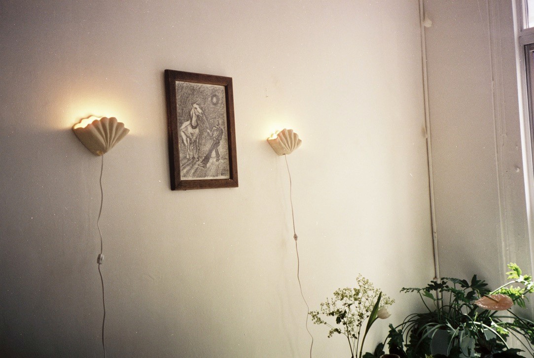 Shell sconces, 2024. Sculpture clay body, hand built and wired.
